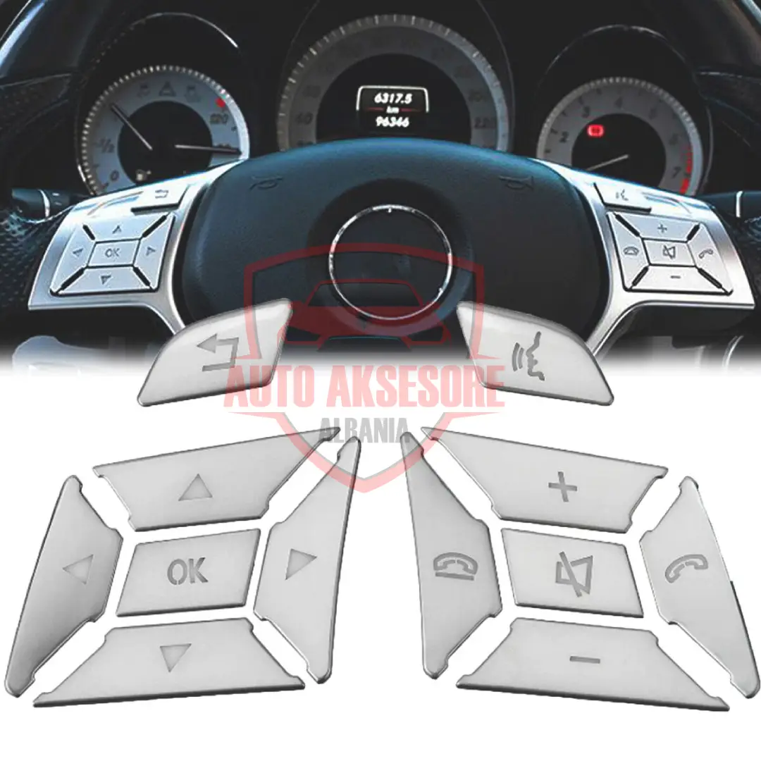 Covera chrom për butona timoni për Mercedes-Benz W204, ML, GLK, W212, etj. Disponojmë për të dy seritë e makinave. Disponojmë vetëm ngjyrë chrome. Coverat janë shumë cilësor, me ngjitje dhe nuk zbardhen lehtë nga përdorimi si dhe i japin makinës tuaj pamjen e munguar. Coverat shiten set/çift. Lehtësisht të montushme mund ta bëni dhe vet