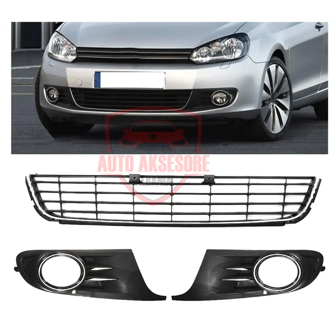 Grila parakolpi për Golf 6. Disponojmë 3 modele të ndryshme për golf 6 gti, me fener mjegulle ose jo. Grilat shiten tek ose çift. Çmimi është për copë.
