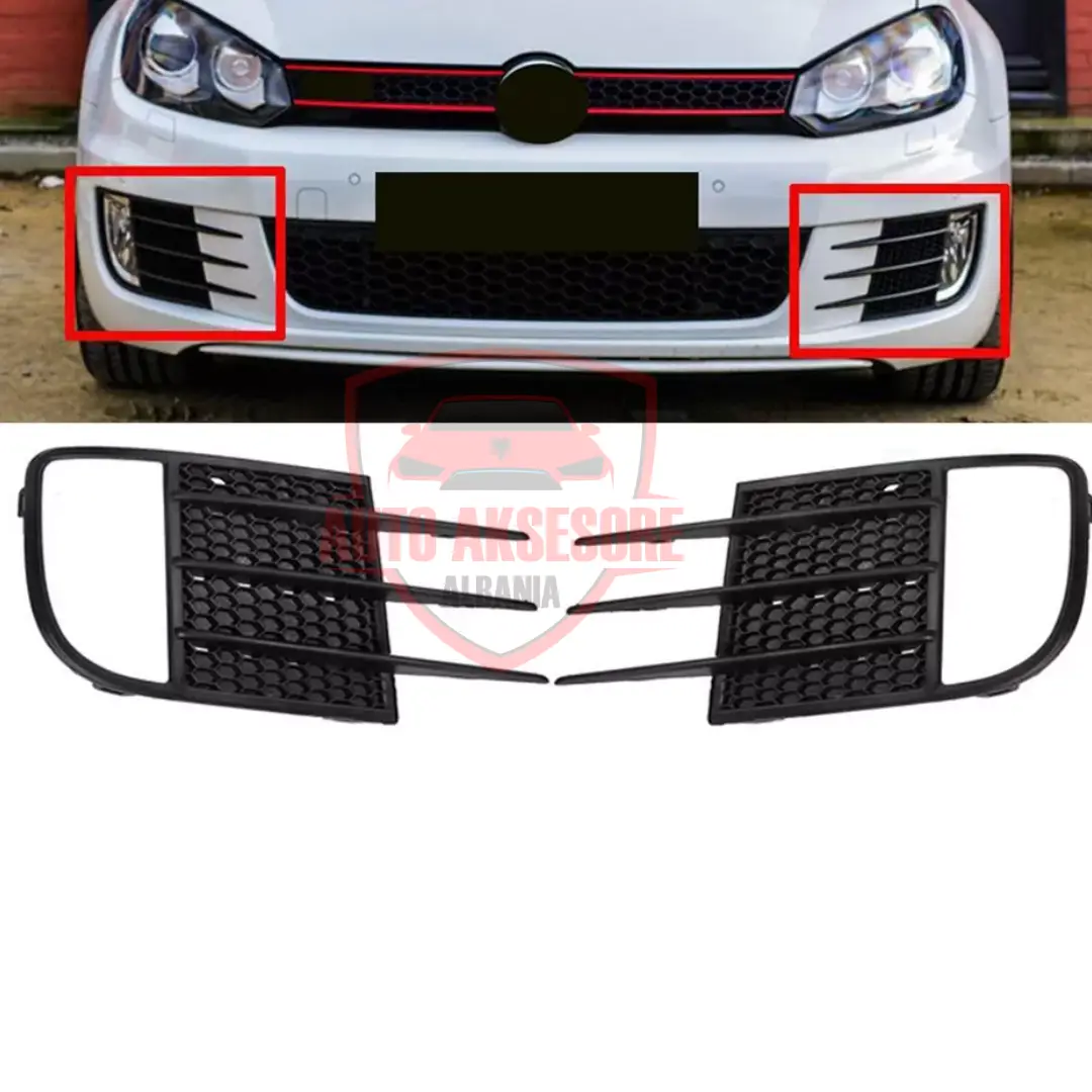 Grila parakolpi për Golf 6. Disponojmë 3 modele të ndryshme për golf 6 gti, me fener mjegulle ose jo. Grilat shiten tek ose çift. Çmimi për copë ësshtë 2500 lekë kurse çift 4500 lekë.