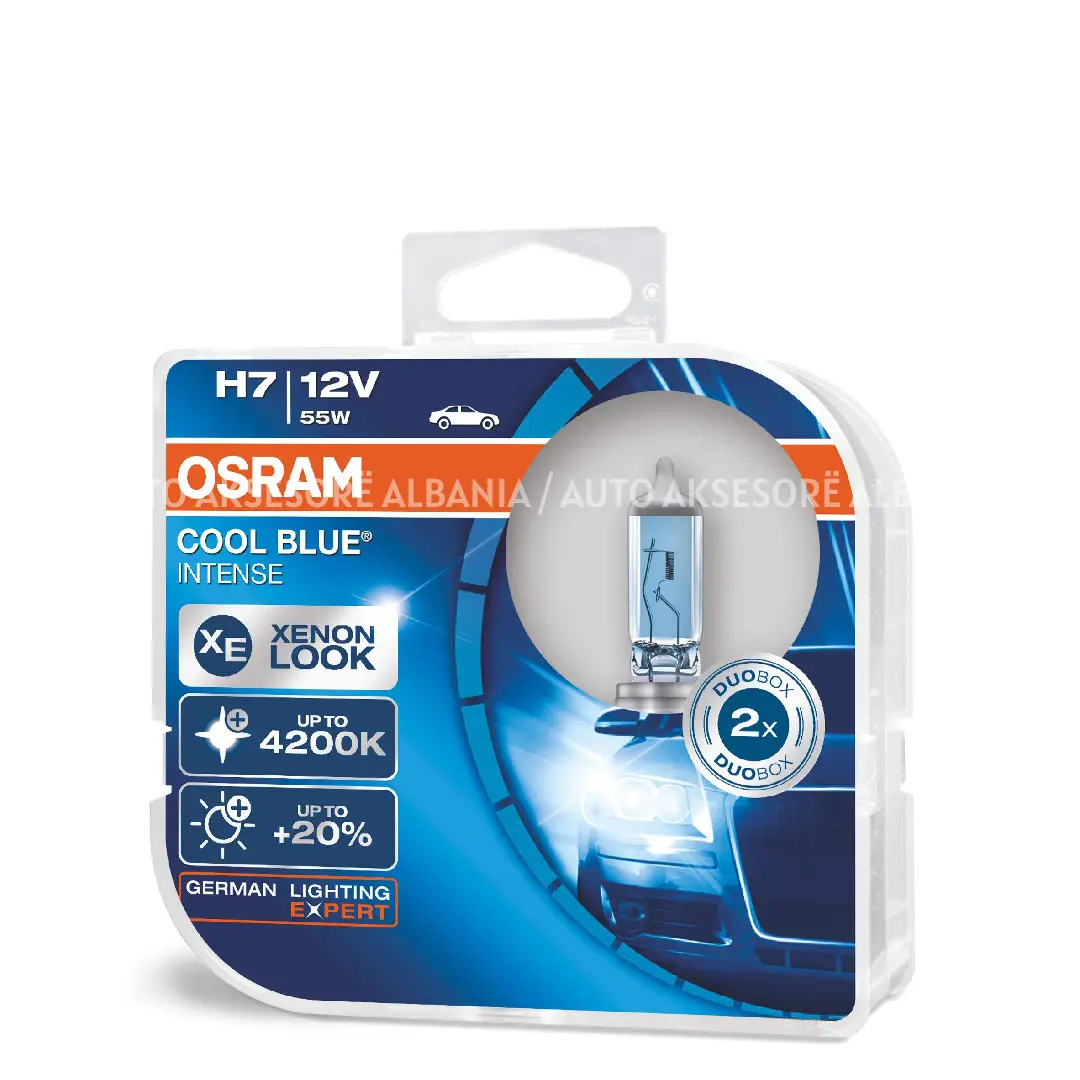 Llampa halogjene Osram Color Blue me look Xenon. Mundësojnë ndriçim shumë të mirë me nuancë blu si xenon.