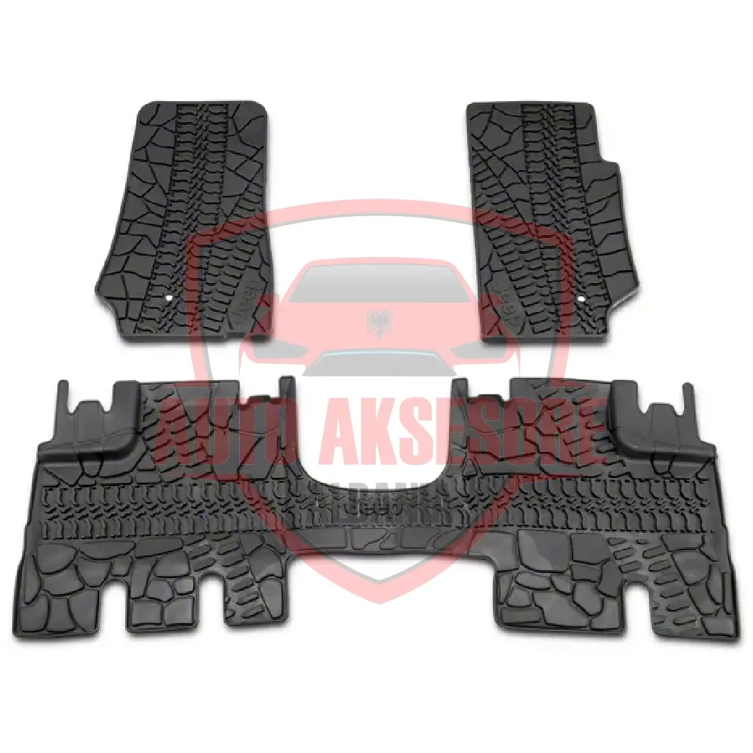 Seti përfshin tapetat para dhe pas (sipas konfigurimit të modelit), me prerje të dedikuara për fiksim të sigurt dhe qëndrueshmëri gjatë lëvizjes. Falë ndërtimit të fortë dhe funksional, këto tapeta janë veçanërisht të përshtatshme për Jeep Wrangler, një automjet i ndërtuar për terrene të vështira dhe përdorim intensiv.